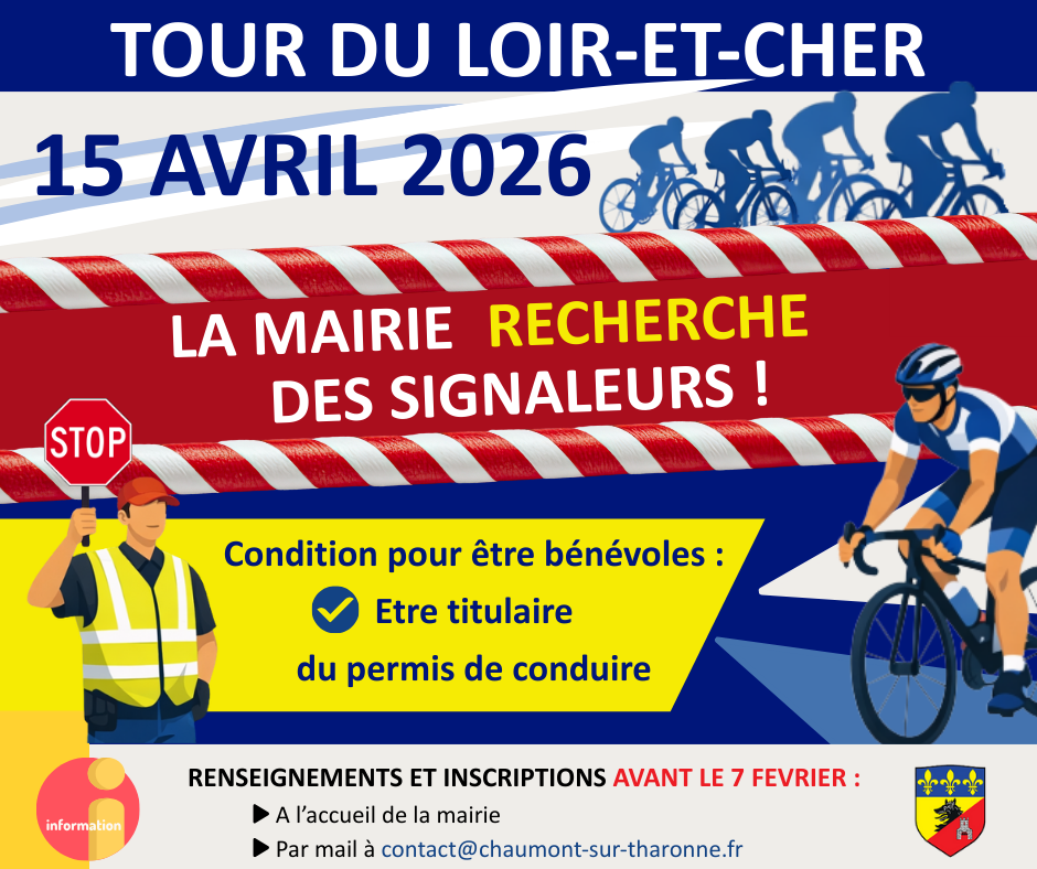 🚴Le Tour du Loir-et-Cher arrive à Chaumont-sur-Tharonne le 15 avril ! La mairie recherche des signaleurs bénévoles titulaires du permis…