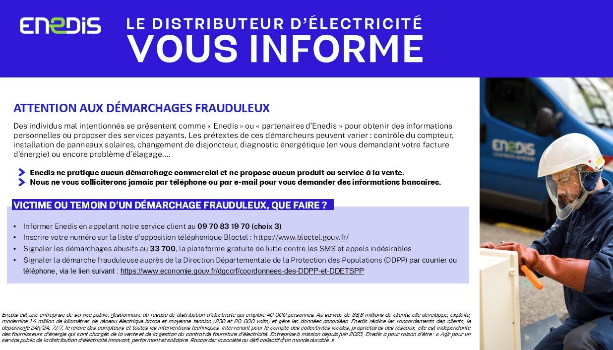 Enedis alerte : certains individus contactent des particuliers par téléphone, prétendant offrir des services ou recueillir des informations personnelles. Ces fraudeurs se font passer pour des partenaires d’Enedis ou même pour Enedis lui-même.