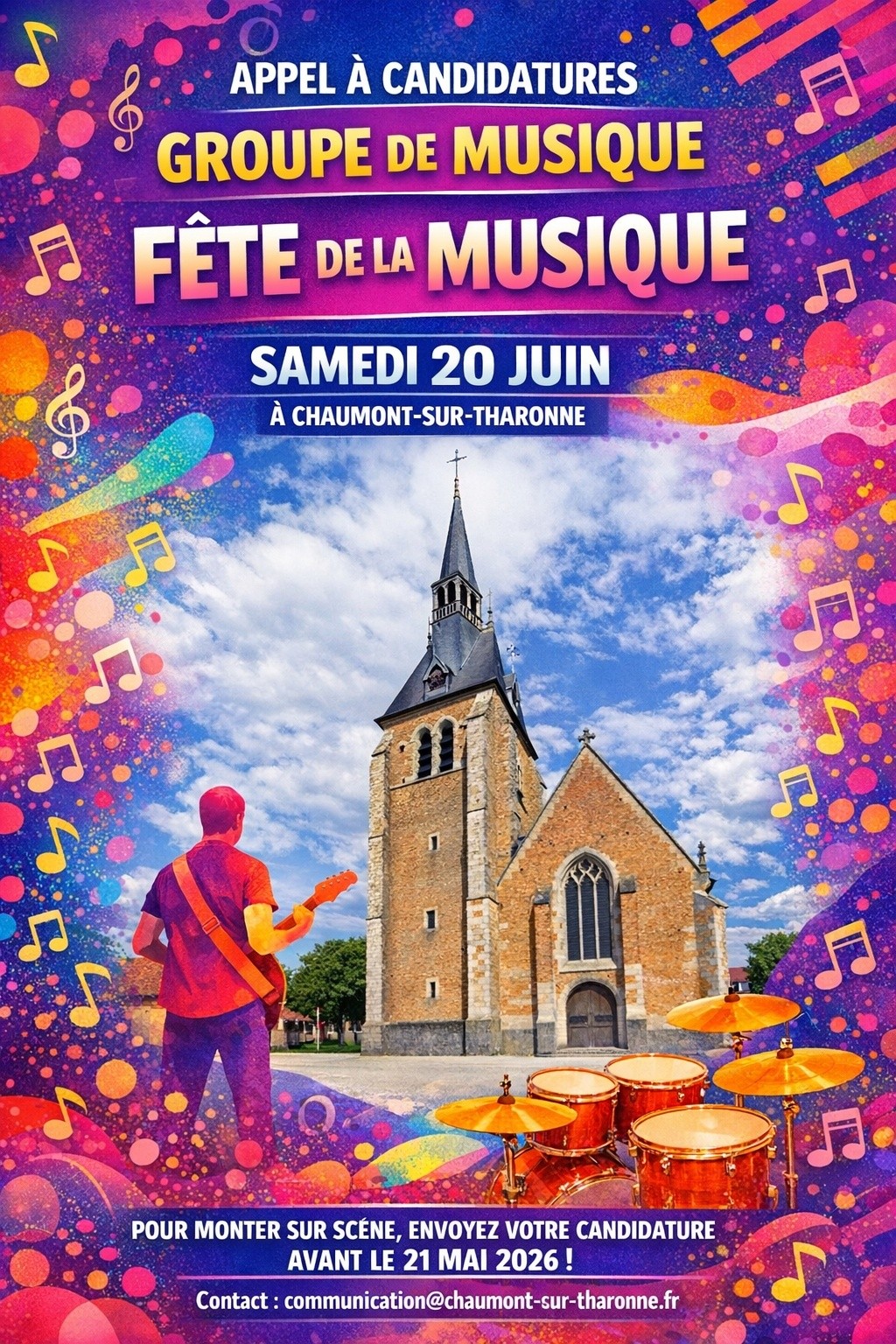 Dans le cadre de la Fête de la musique du samedi 20 juin, la commune recherche un groupe pour animer le début de soirée.
