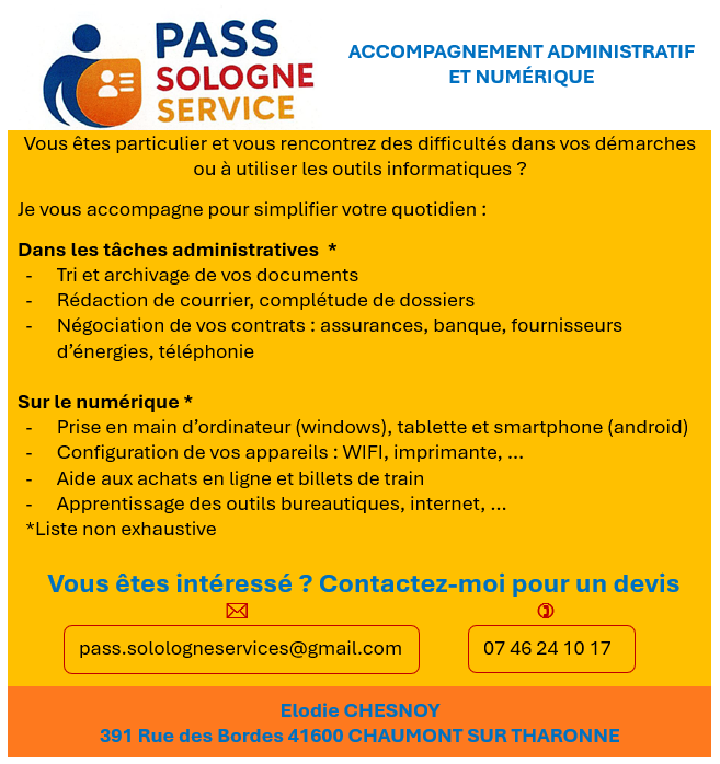 PASS SOLOGNE SERVICE – CHAUMONT-SUR-THARONNE